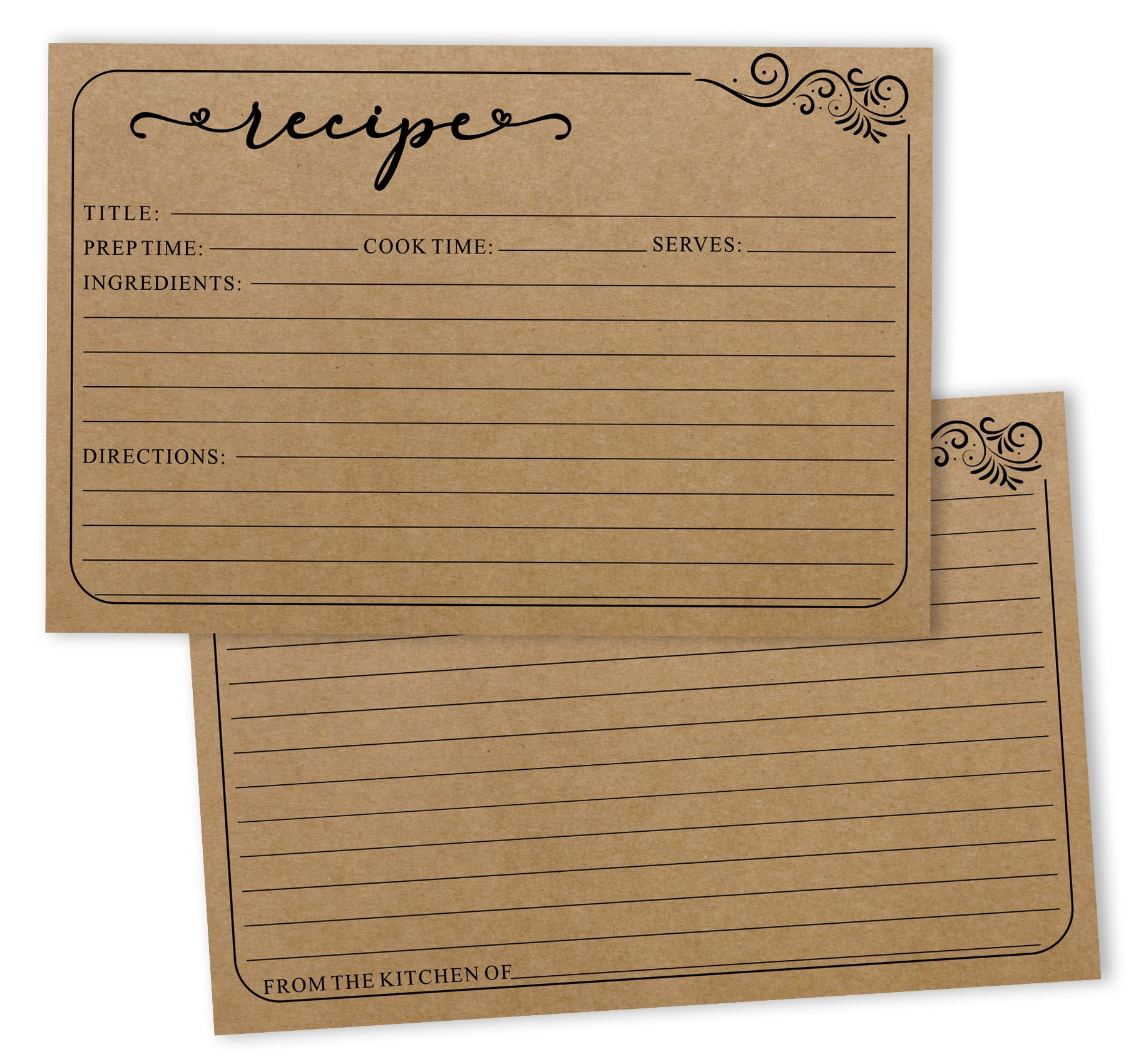 Amazon com: 50 Kraft Double Sided Recipe Cards 4x6 Wedding Bridal