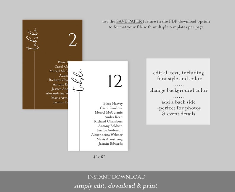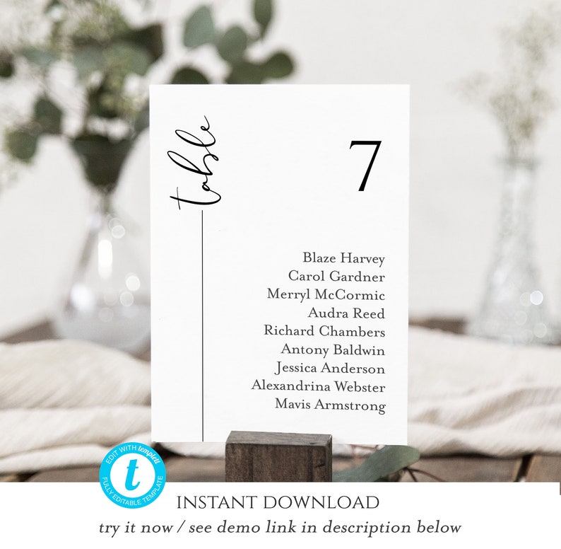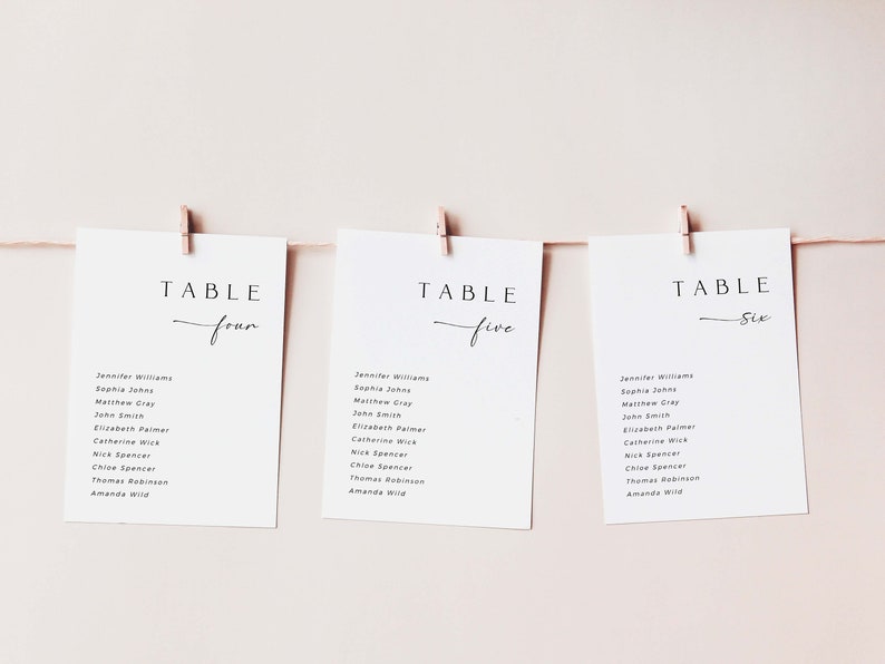 CLAIRE Minimal Wedding Seating Chart Cards Template 4x6 Etsy