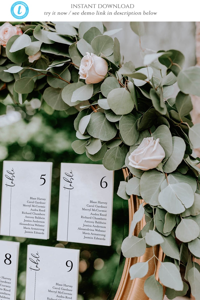 Wedding Seating Chart Canva Template 4x6 5x7 Wedding Table Seating