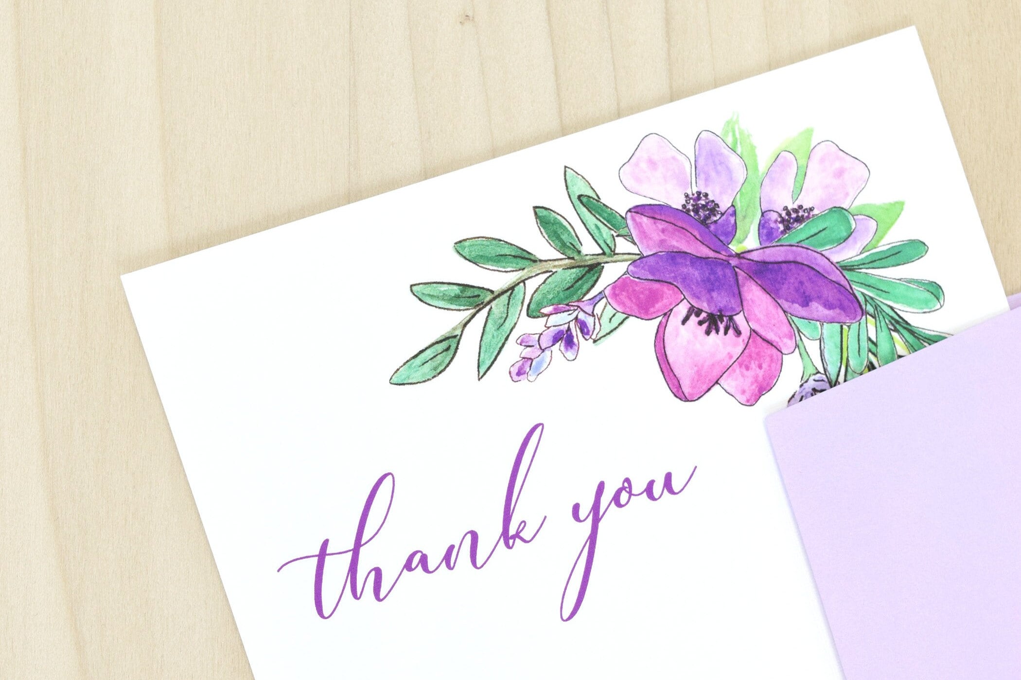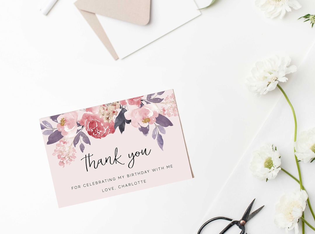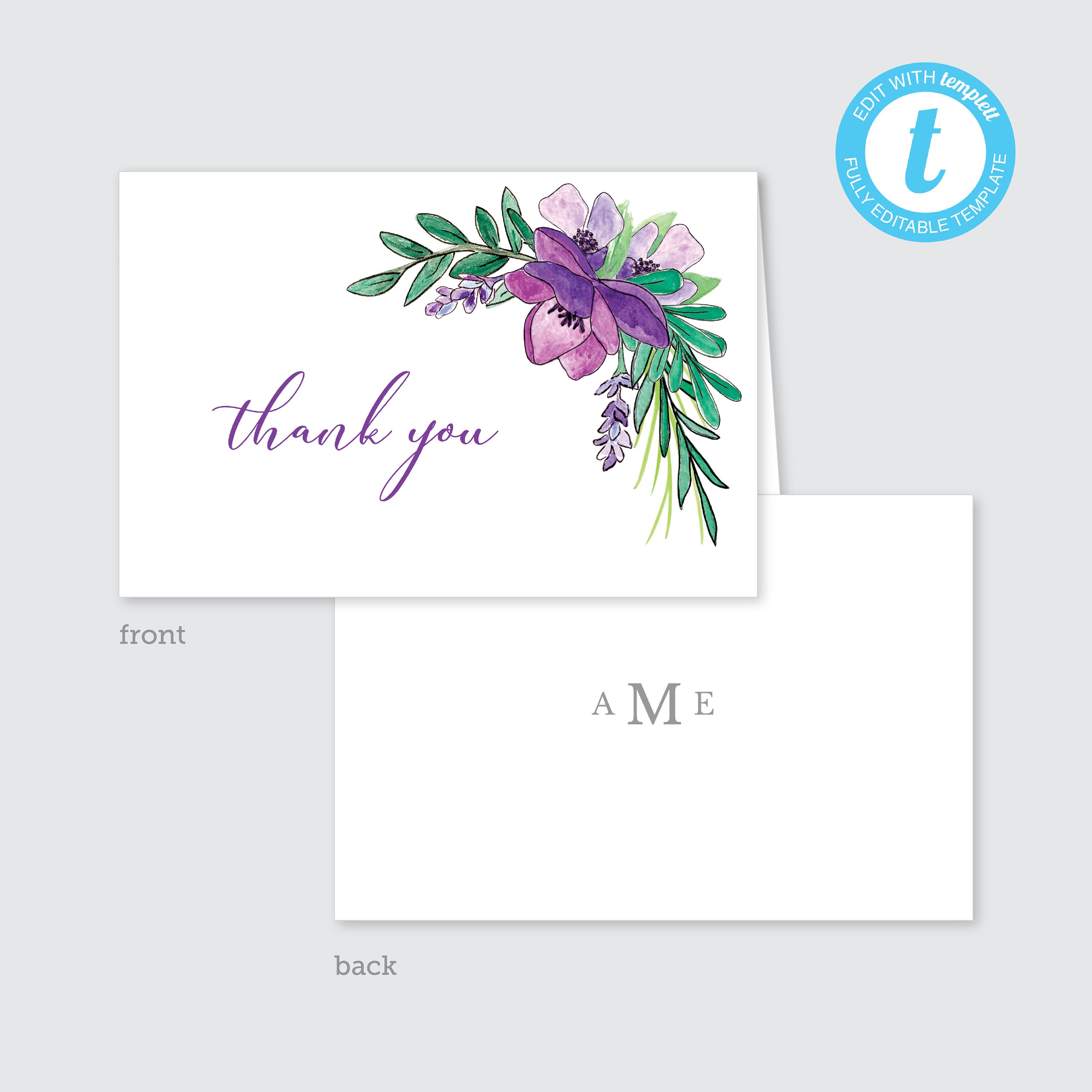 Editable Folding Thank You Card Template 4x6 Watercolor Florals