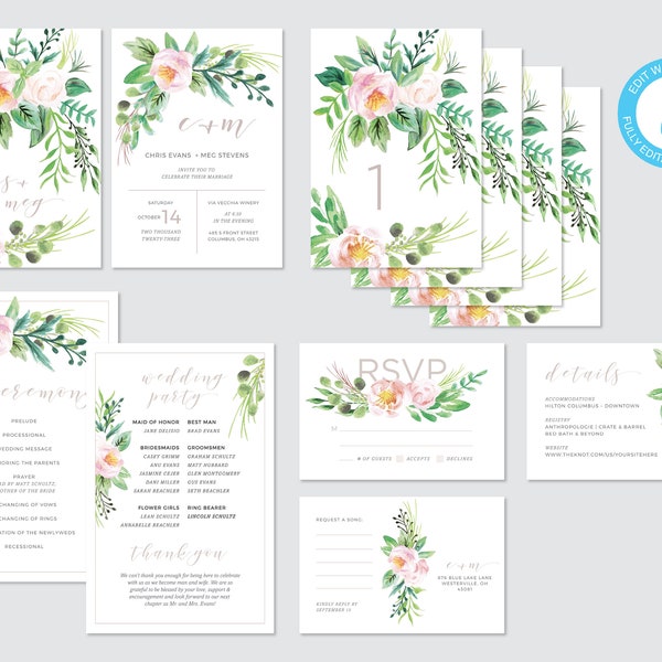 Editable Folding Thank You Card Template 4x6 Watercolor Florals Blush