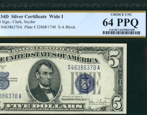 $5 1934 Silver Certificate ** DAILY CURRENCY AUCTIONS ((PCGS 64PPQ