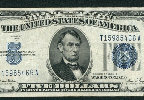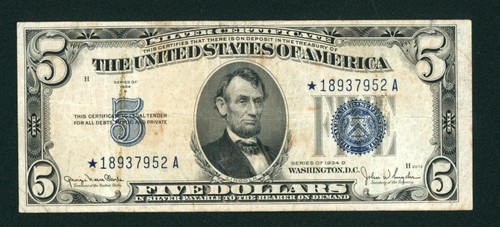 5 1934 Silver Certificate