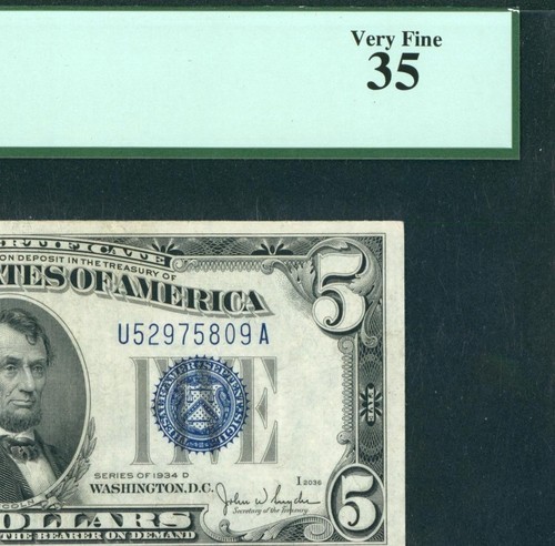 $5 1934 Silver Certificate ** DAILY CURRENCY AUCTIONS (( PMG 35 )) eBay