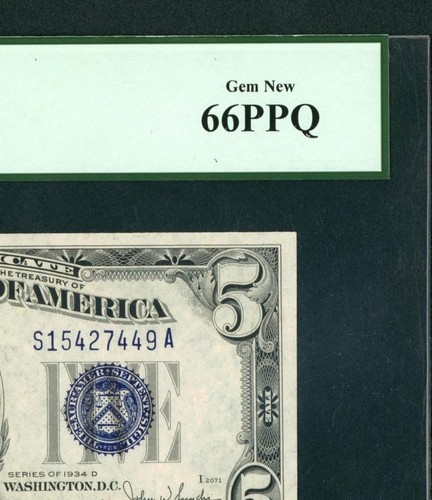 $5 1934 Silver Certificate ** DAILY CURRENCY AUCTIONS ((PCGS 66PPQ