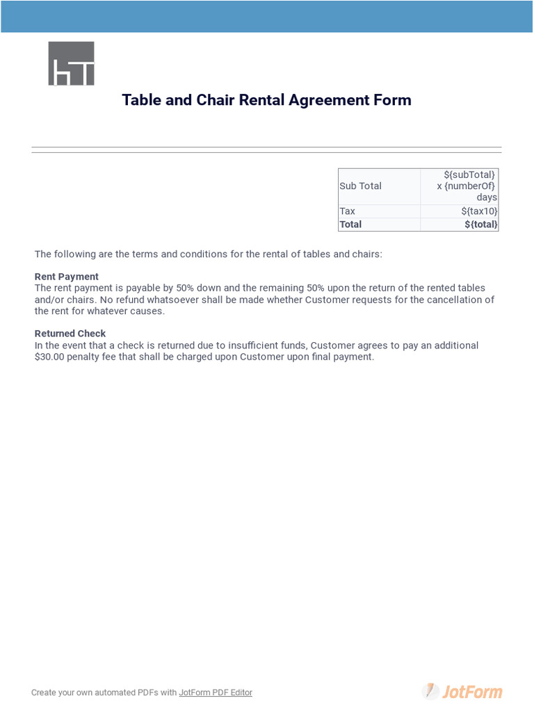 Table and Chair Rental Agreement Form: Total PDF Renting Economies
