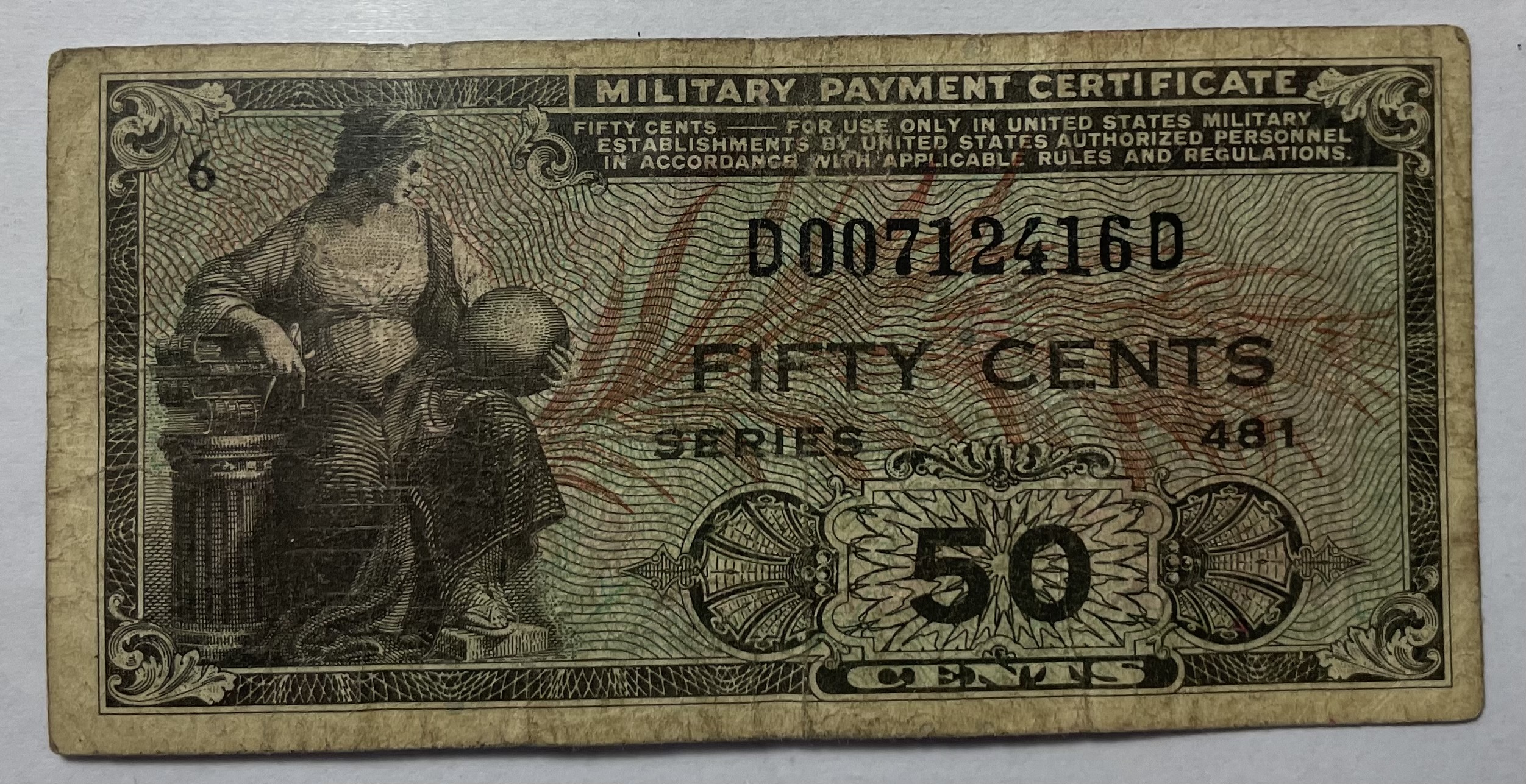 1951 1954 Series 481 50 Cent Military Payment Certificate Property Room