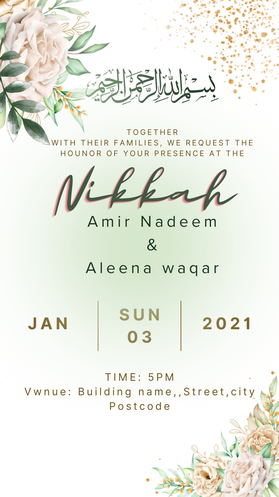 Muslim Wedding Invitation Template nikkah Invitation Template Digital