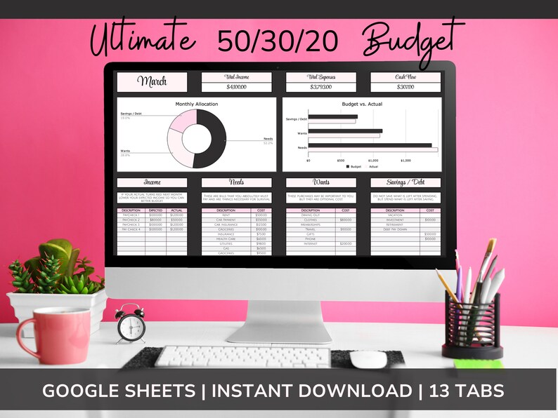 50/30/20 Budget Spreadsheet Plus Budget Template for Google Sheets