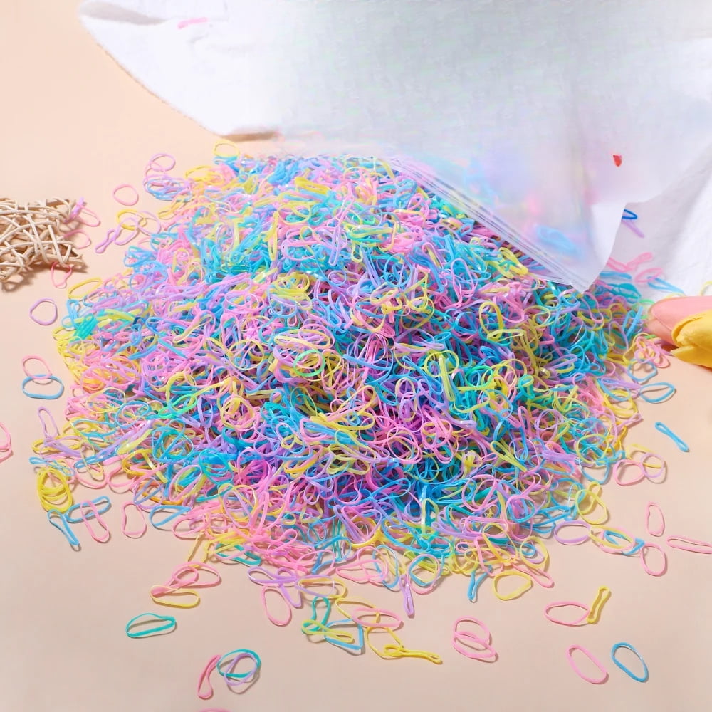 500/1000/2000pcs Girls Colourful Disposable Rubber Band Hair Ties