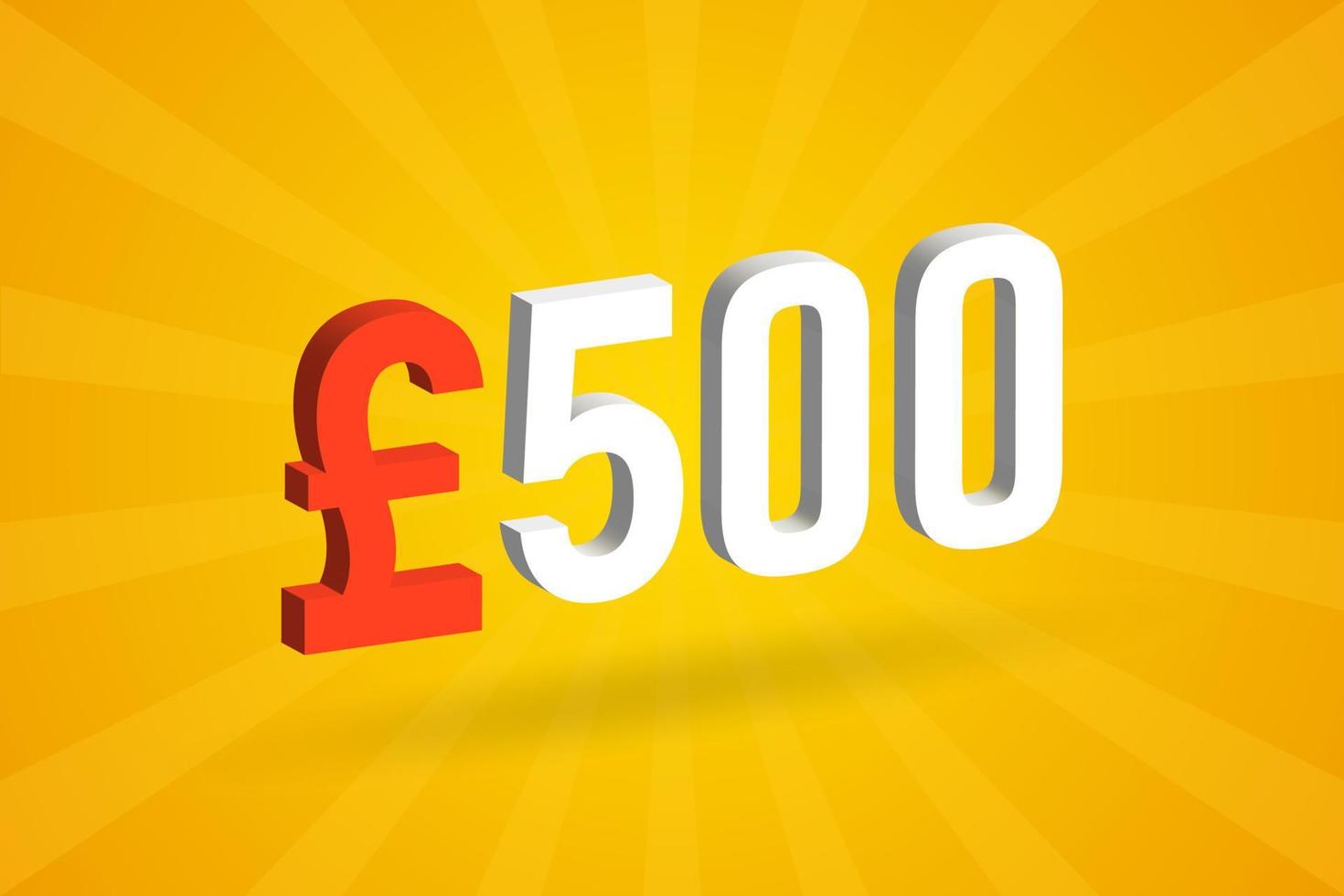 500 Pound Currency 3D vector text symbol 3D 500 British Pound Money