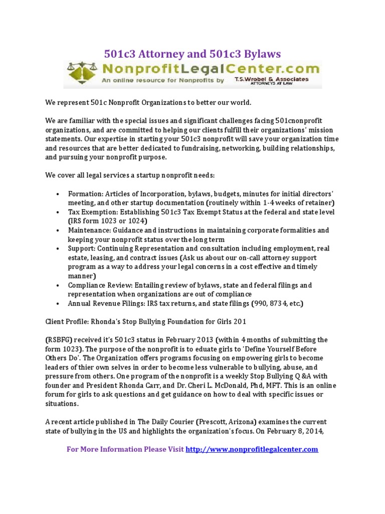 501c3 Attorney and 501c3 Bylaws PDF Nonprofit Organization Business
