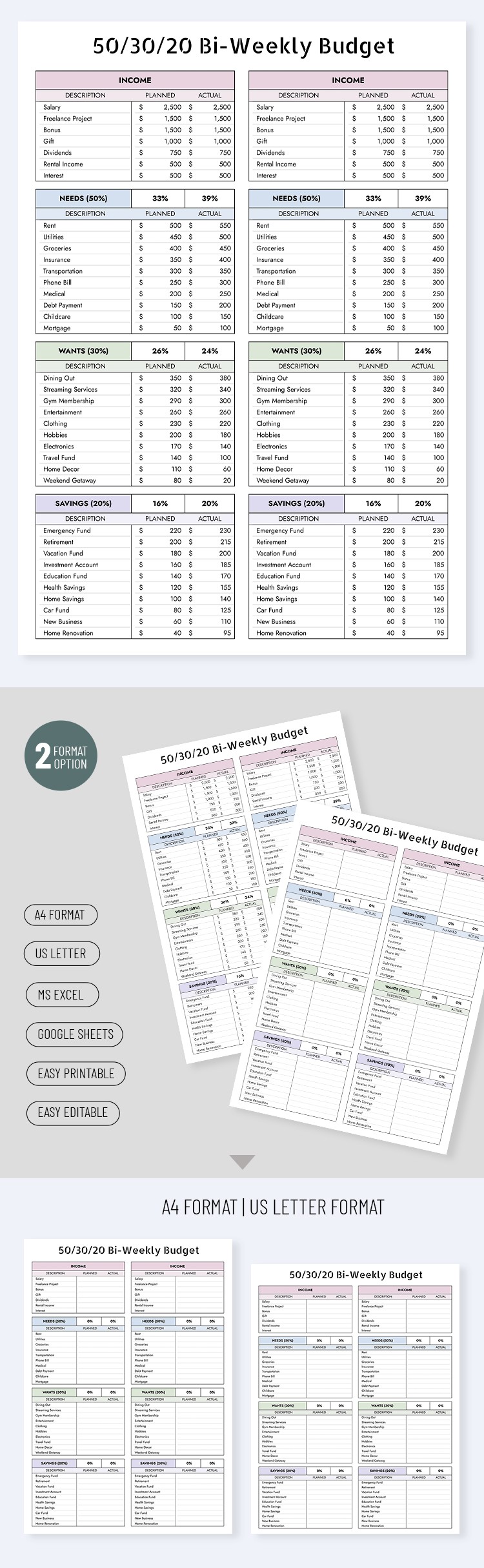 Free 50/30/20 Biweekly Budget Template in Google Sheets and Microsoft