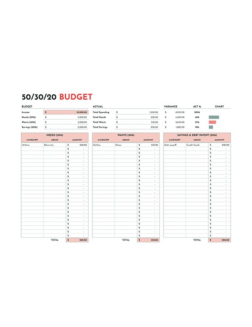 50/30/20 Template Excel