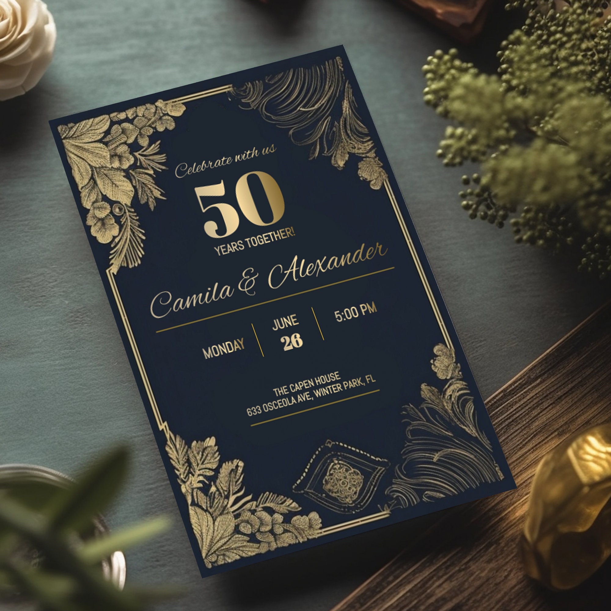 Free Classic 50th Anniversary Event Invitation Template to Edit Online