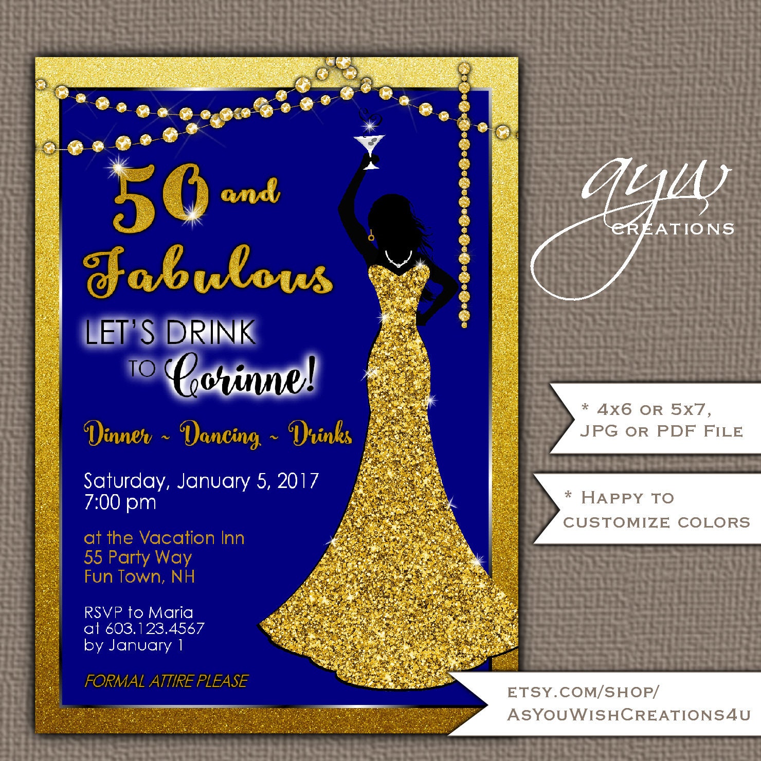 50th Birthday Party Invitations Jenny Printable