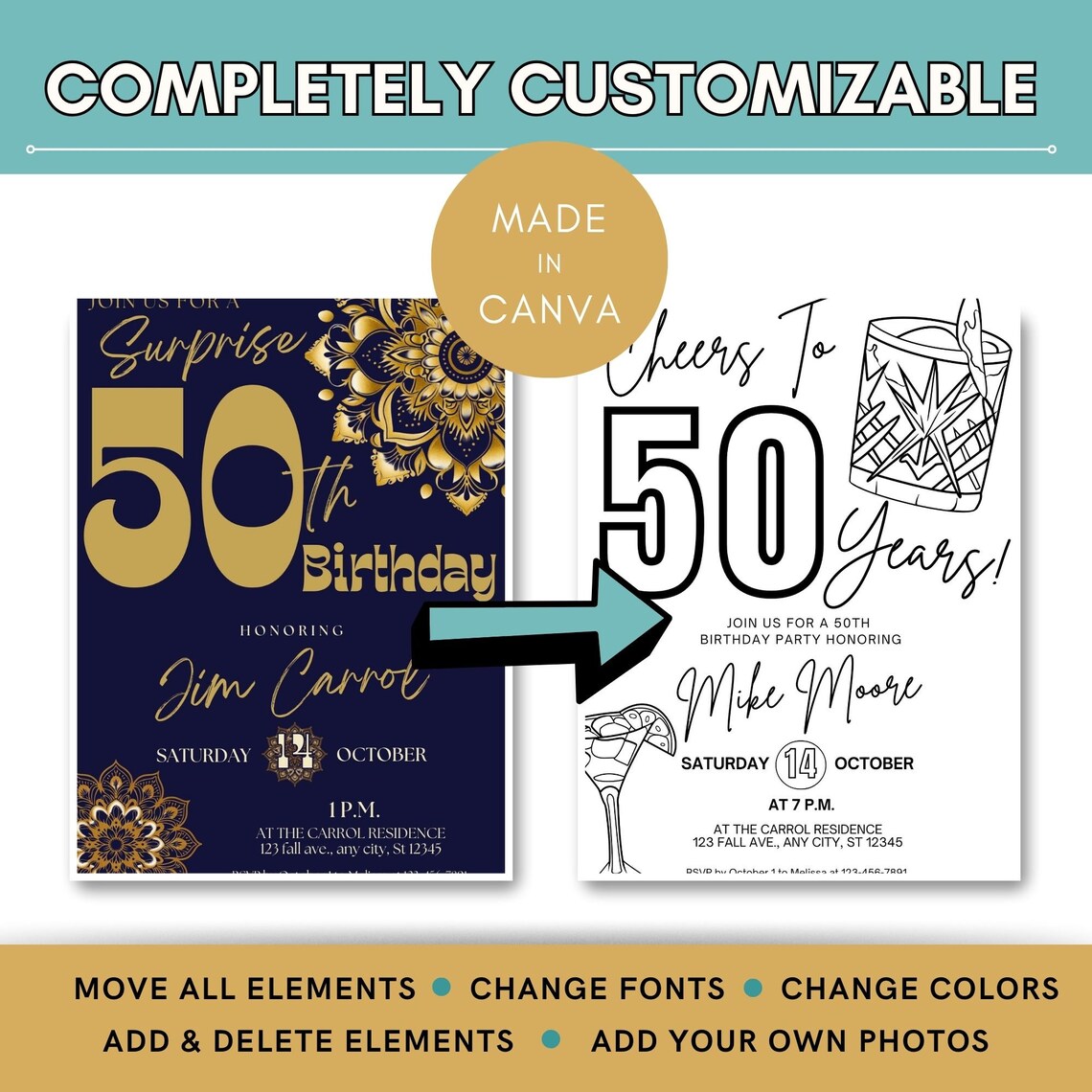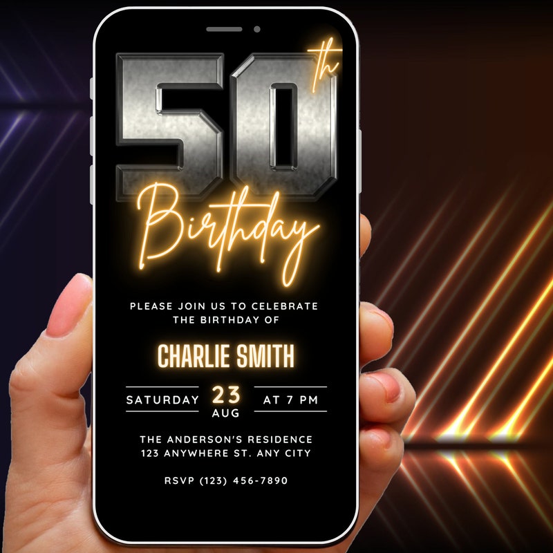 50th Birthday Invite Man Digital Etsy