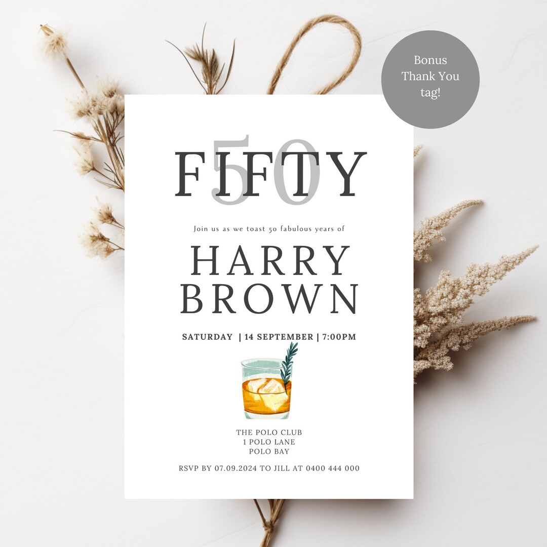 Men s 50th Birthday Invitation Template Editable 50th Etsy