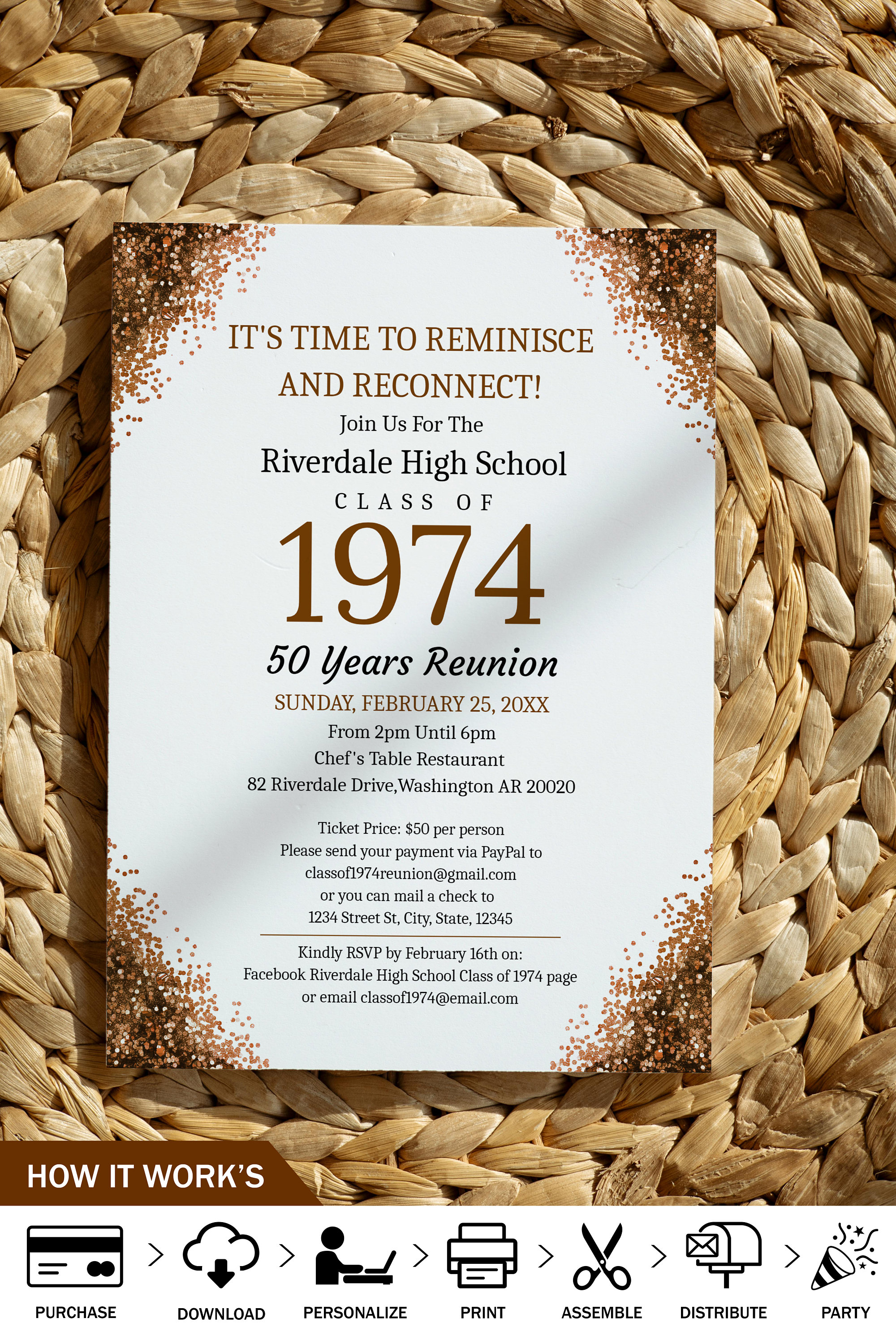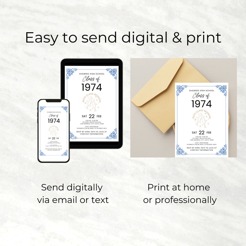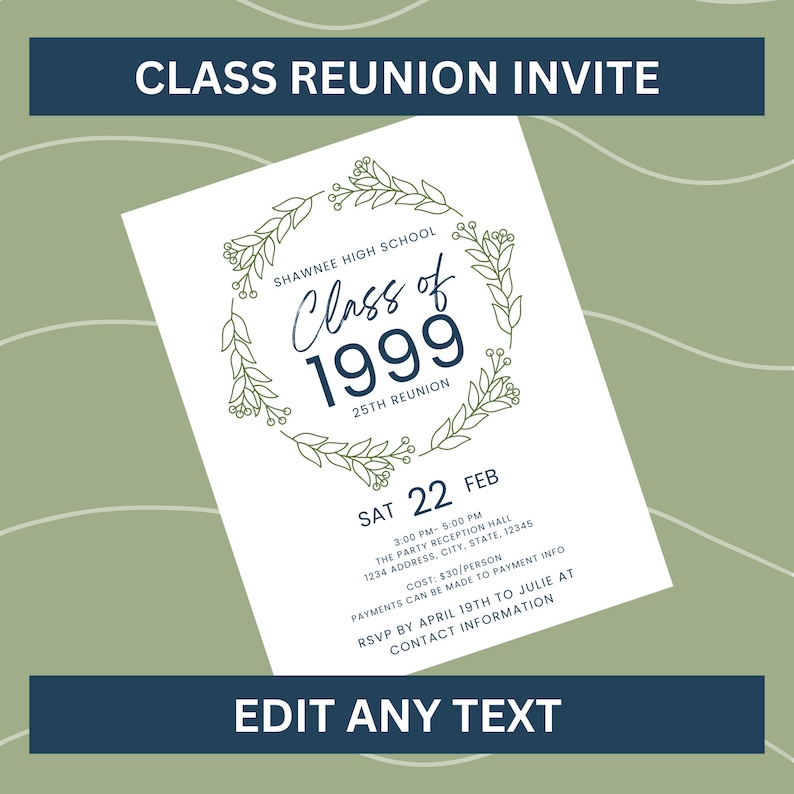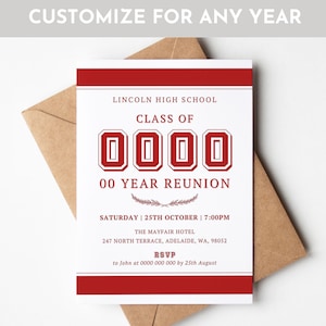 Class Reunion Invitation TEMPLATE 10th 20th 30th 40th 50th High School