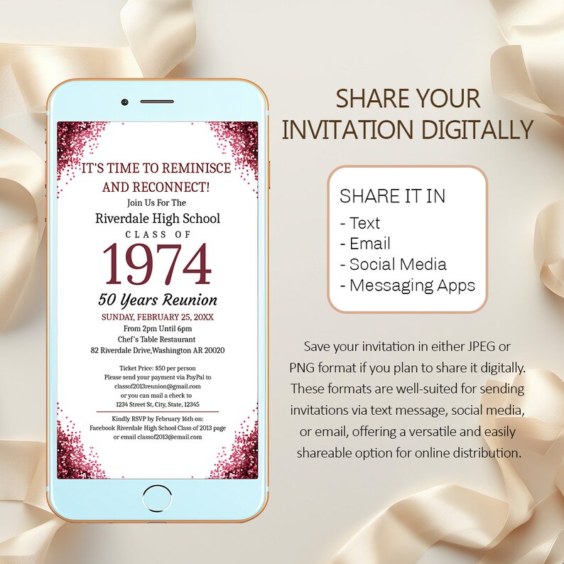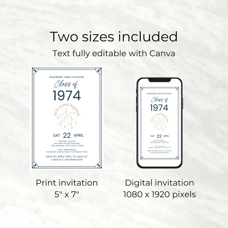 50th Year Class Reunion Invite Etsy