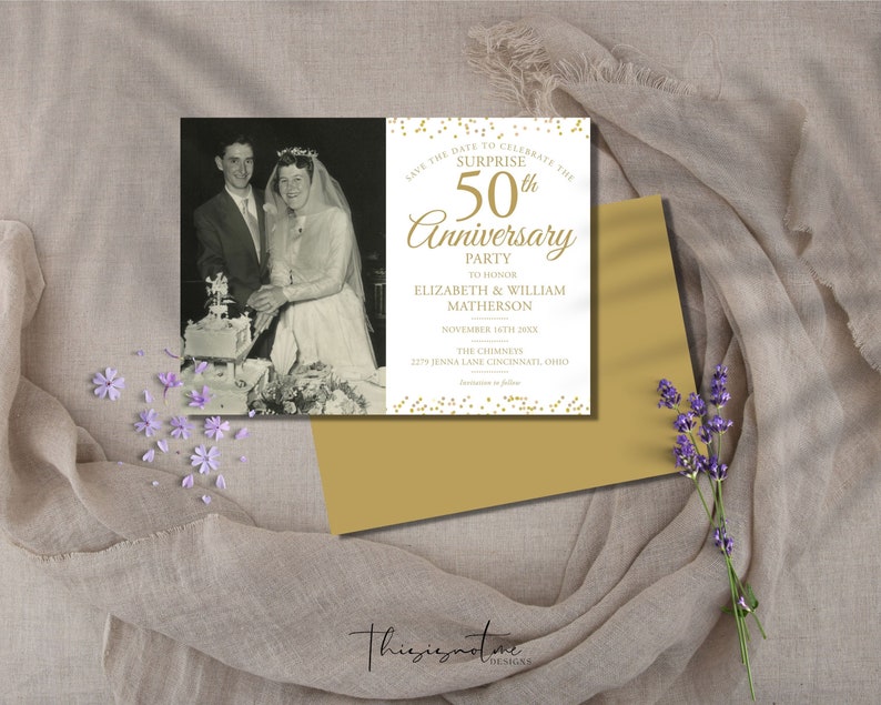 50th Golden Wedding Anniversary Save the Date Photo Invitation Etsy