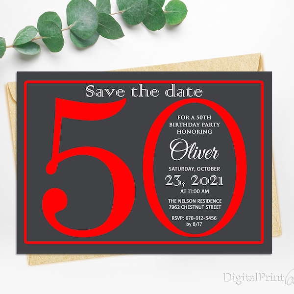 50th Birthday Save the Date Invitation Etsy