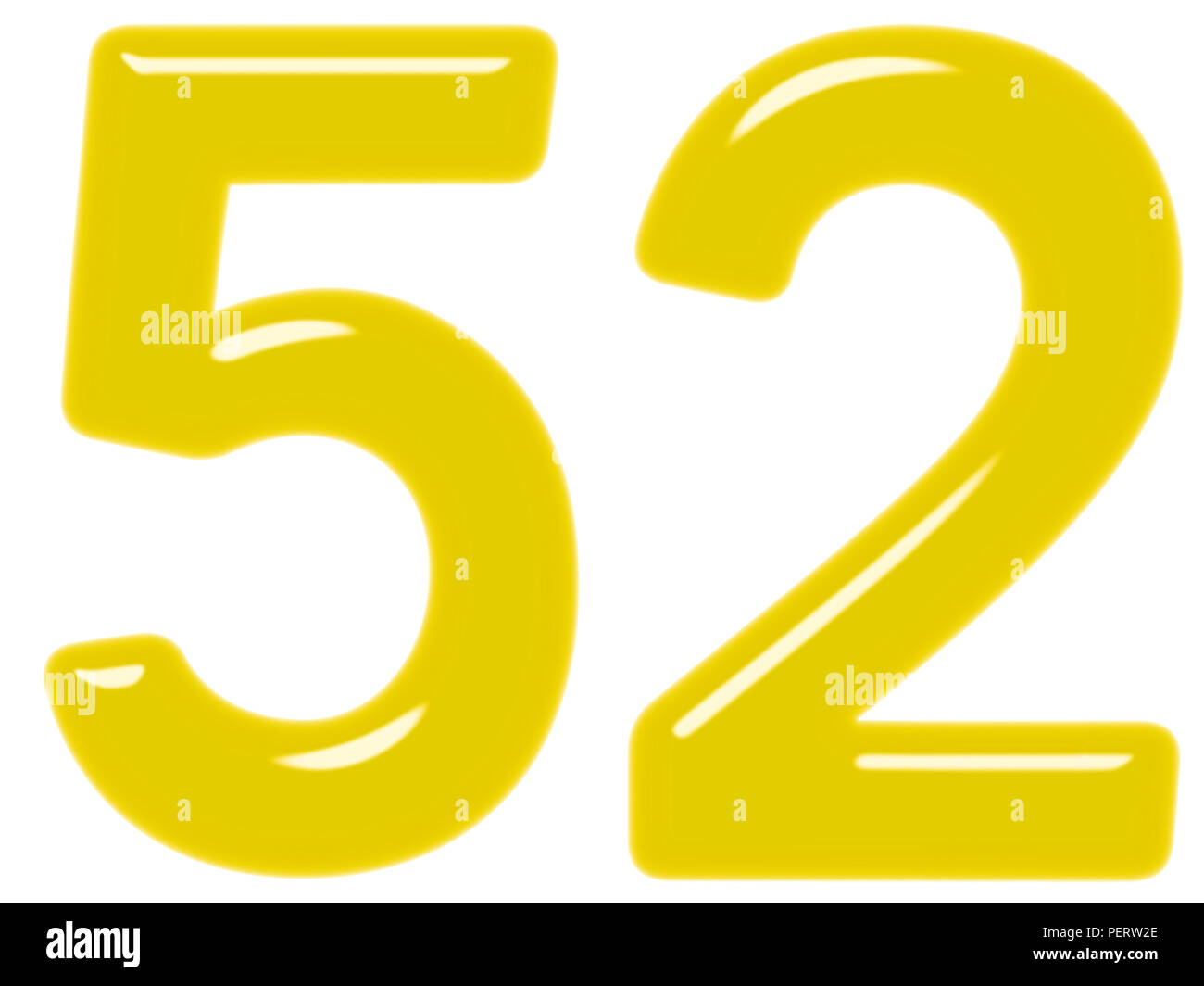 Numeral 52 fifty two isolated on white background 3d render Stock