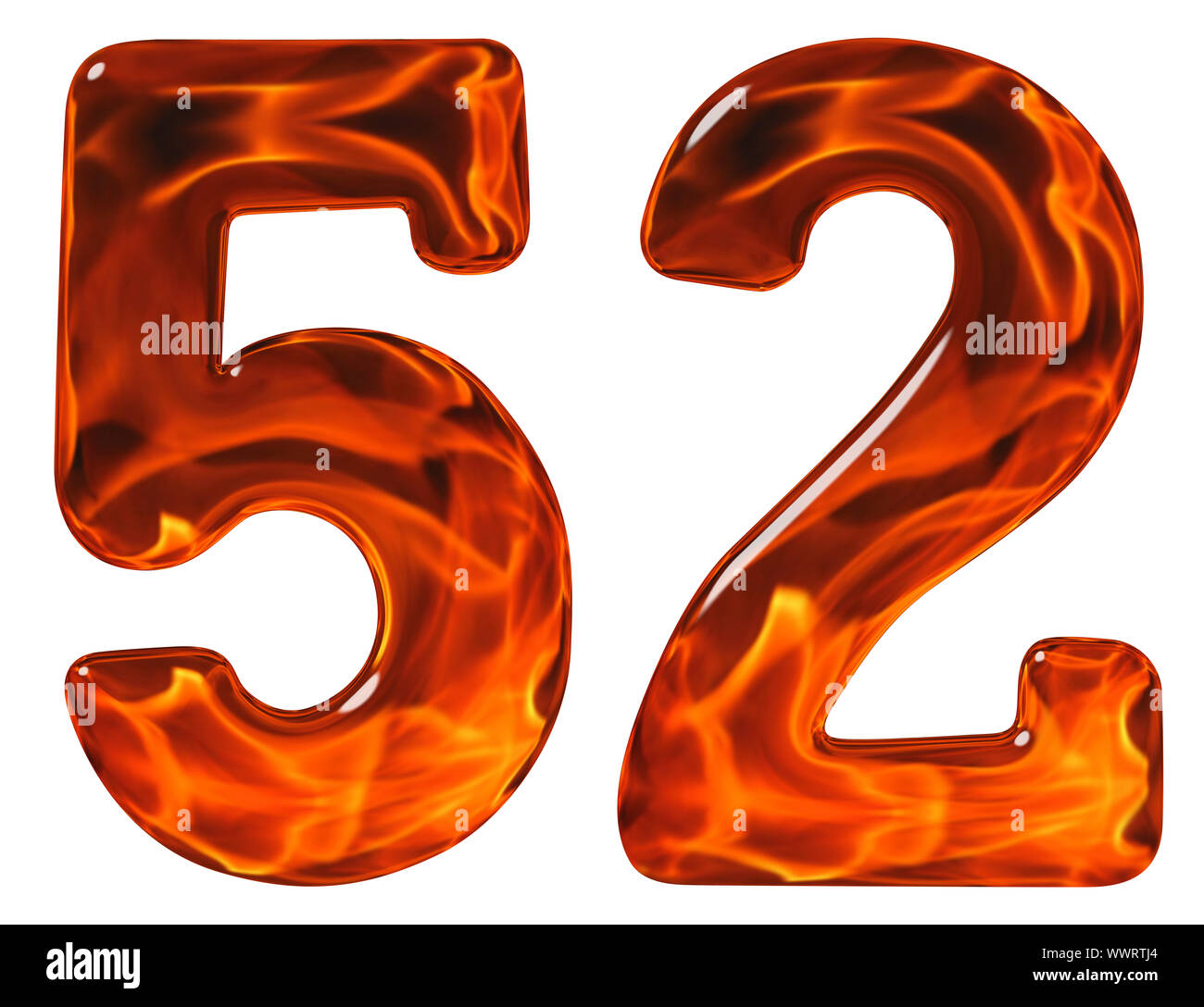 52 fifty two numeral imitation glass and a blazing fire isolated on