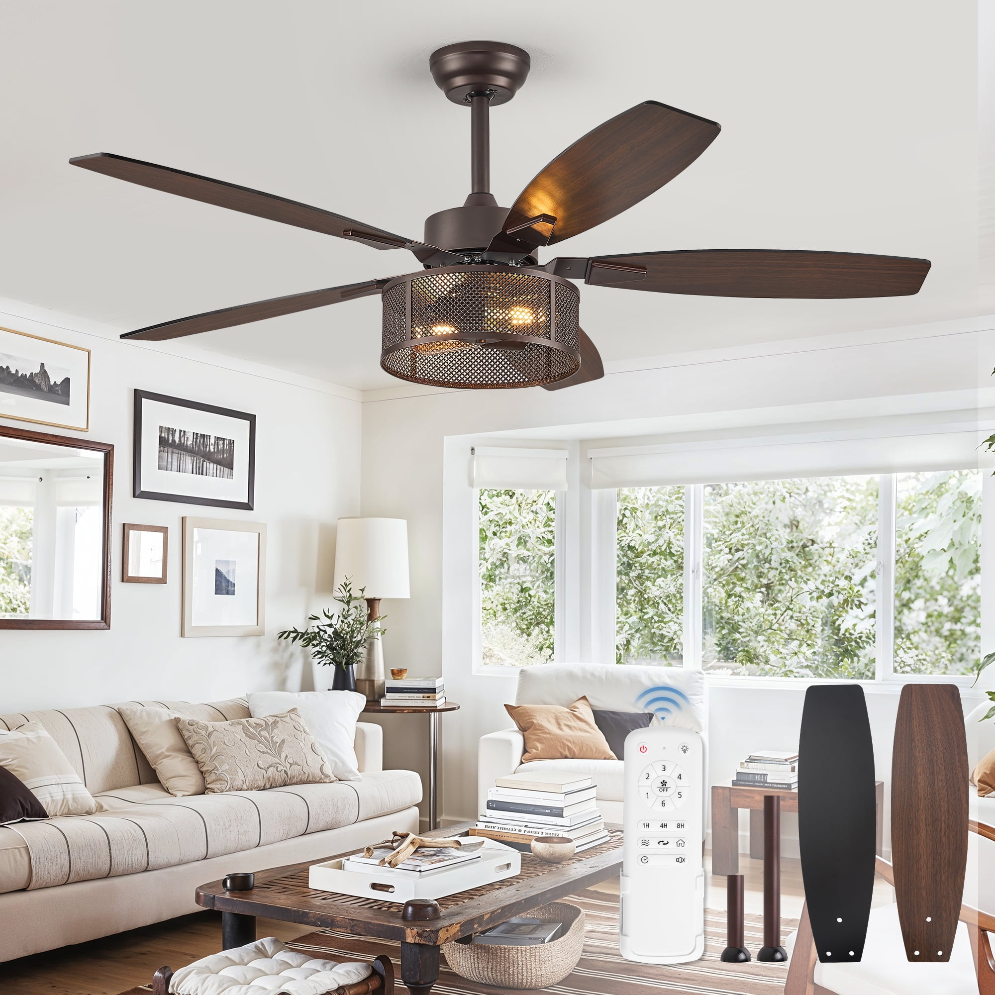 Zardon 52 inch Ceiling Fan with Light and Remote Control Brown Finish