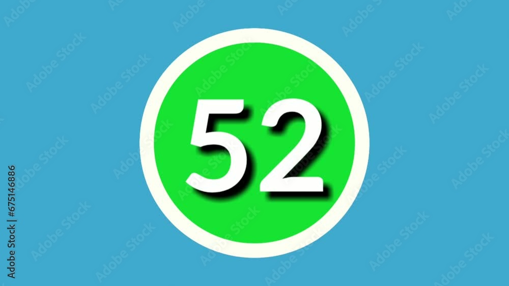 Number 52 Sign Symbol 2d Animation Motion Graphics Icon on Red Circle