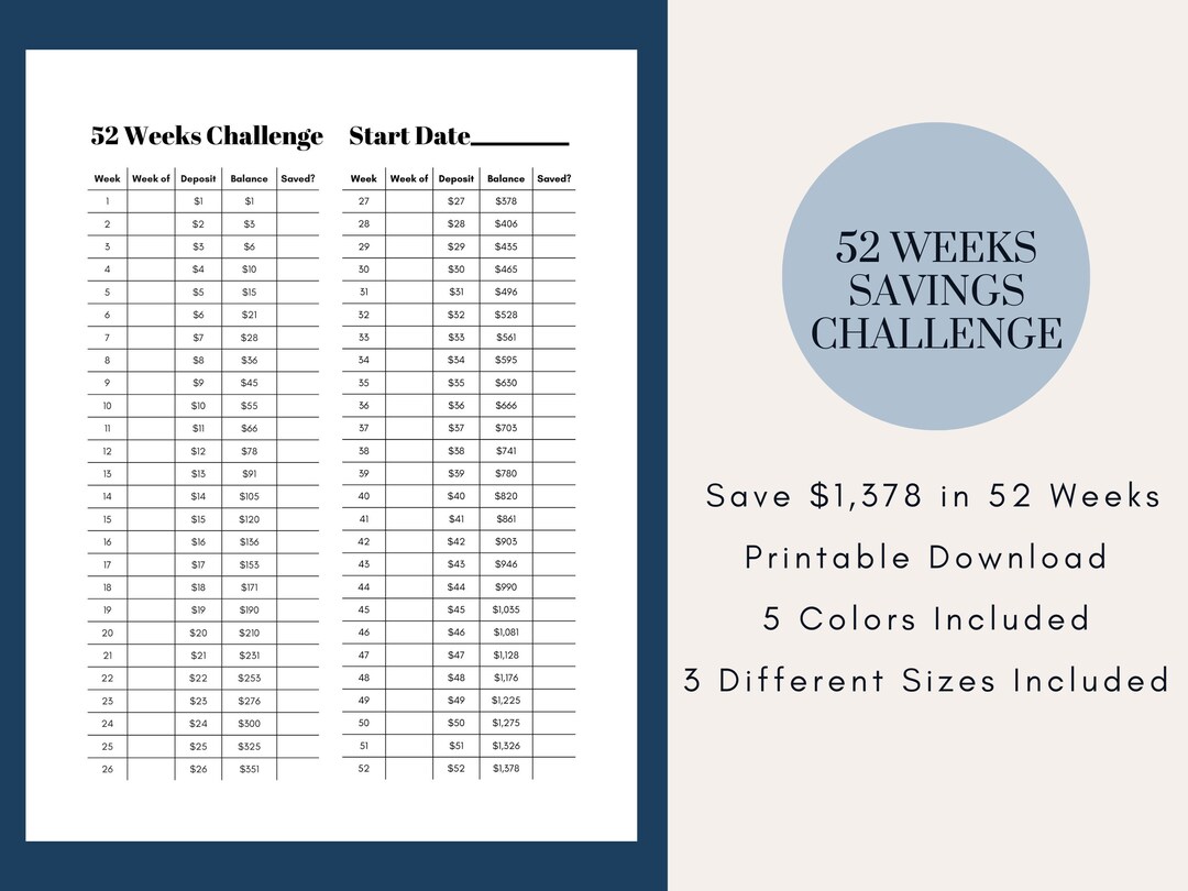 52 Week Savings Challenge Printable Pdf