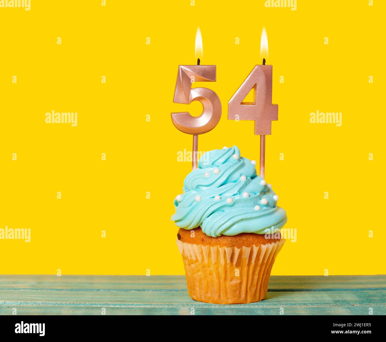 Candle Number 54 Cake Birthday in Blue Background Stock Photo Image