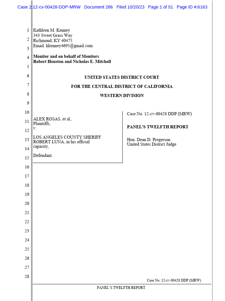 Rosas v Luna Court Expert Panel #39 s 12th Report PDF Prison