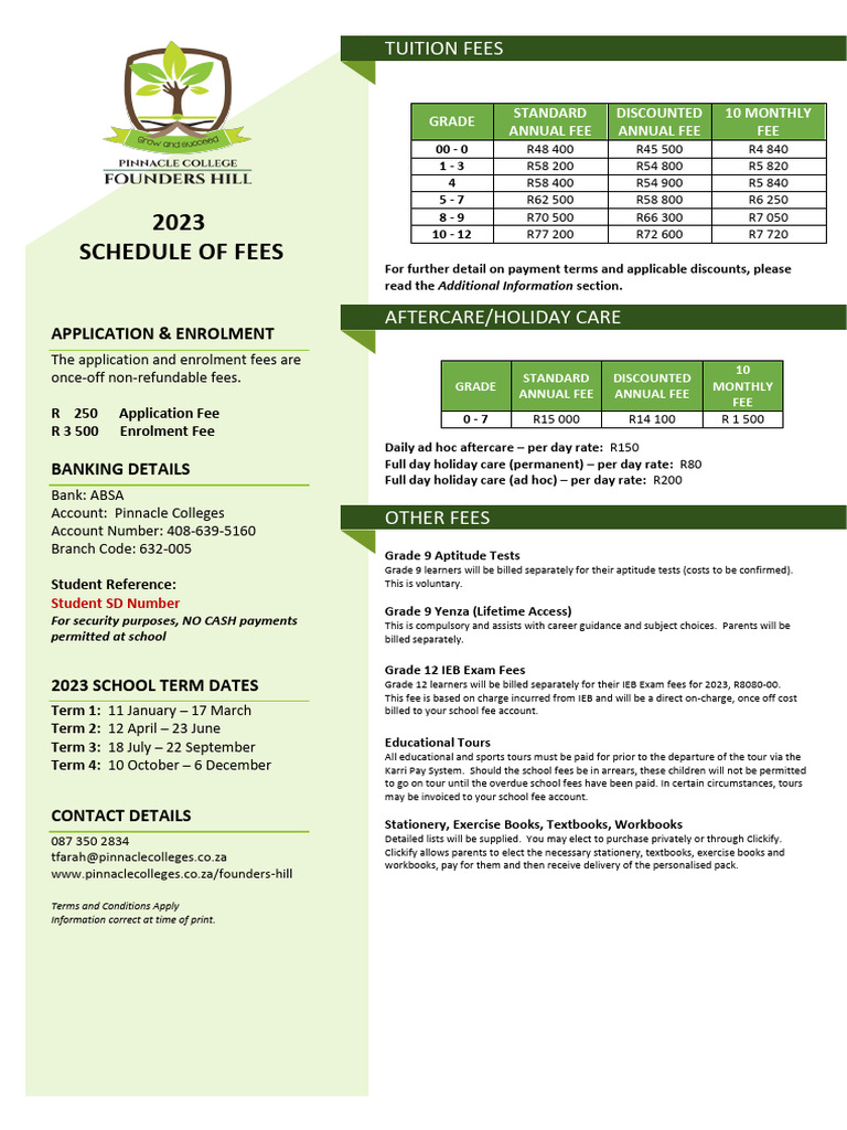 Founders Hill Fees 2023 PDF