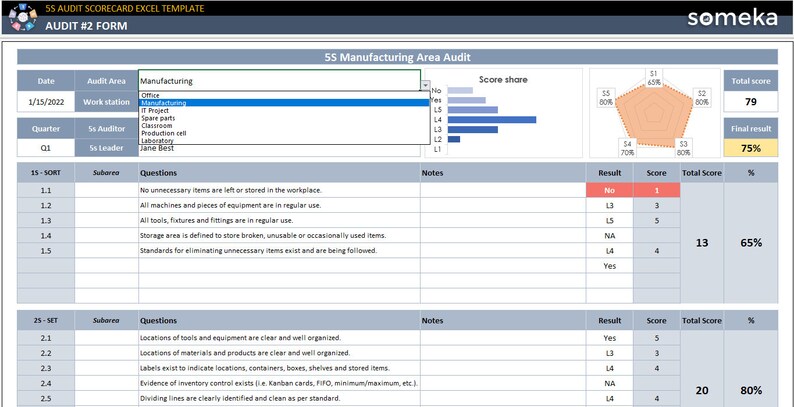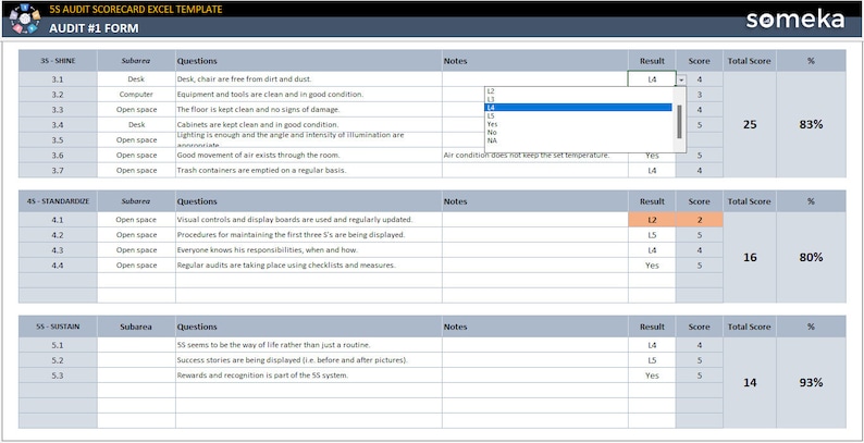 5S Audit Scorecard Excel Template: Process Management Checklist Etsy