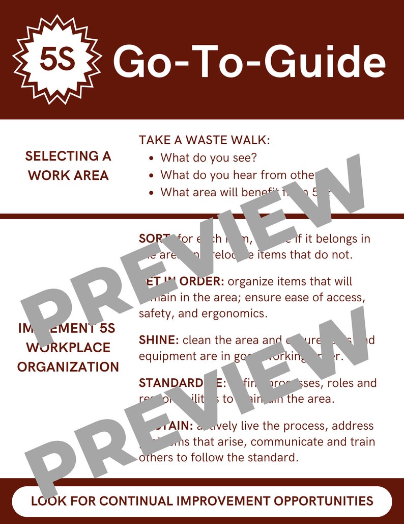 5S Workplace Organization Quick Reference / DIGITAL DOWNLOAD / Lean Six