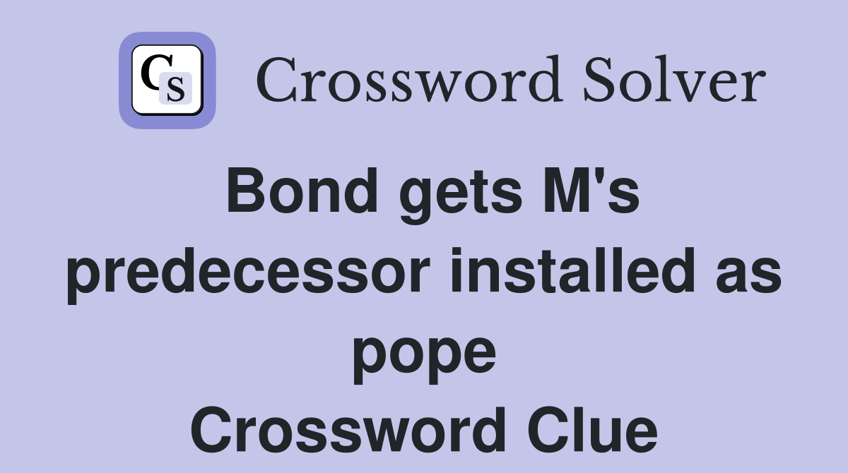 Bond gets M #39 s predecessor installed as pope Crossword Clue Answers