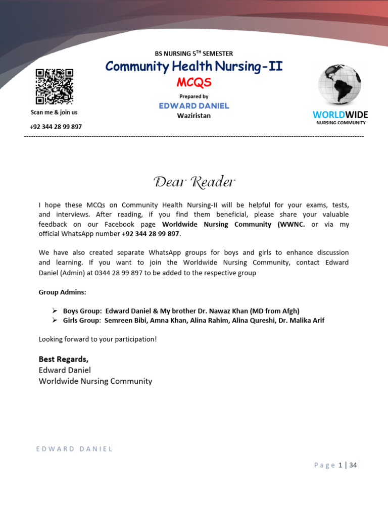 Immunization solved MCQS BS Nursing 5th Semester (Subject: Community