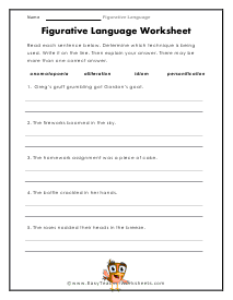 Figurative Language My Worksheet Maker: Create Your Own Worksheets