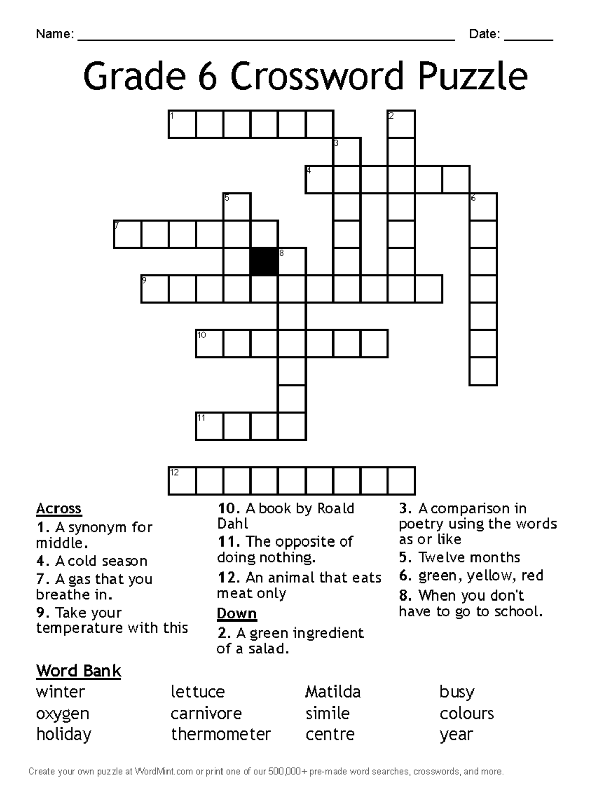 Sixth Grade Crossword Puzzle WordMint Sally Crossword Puzzles