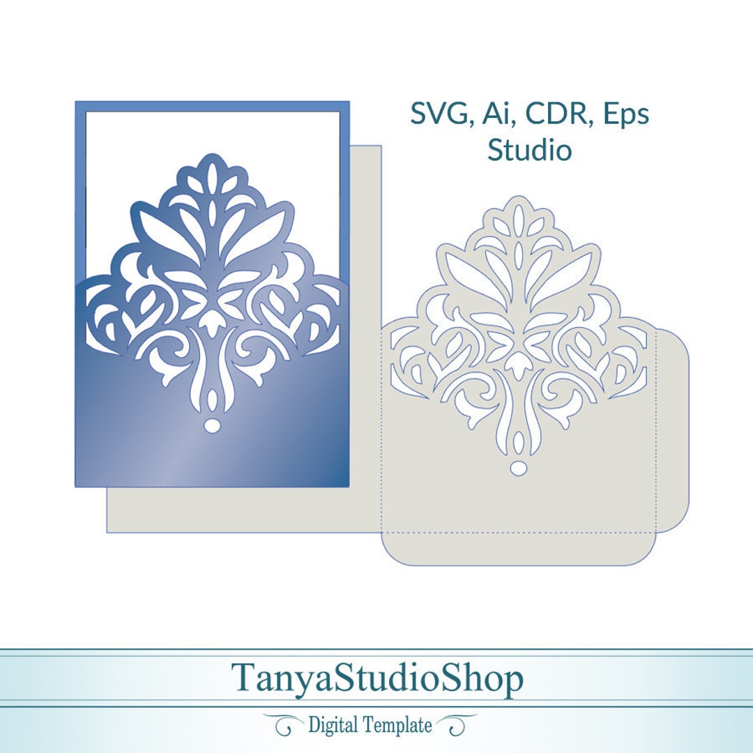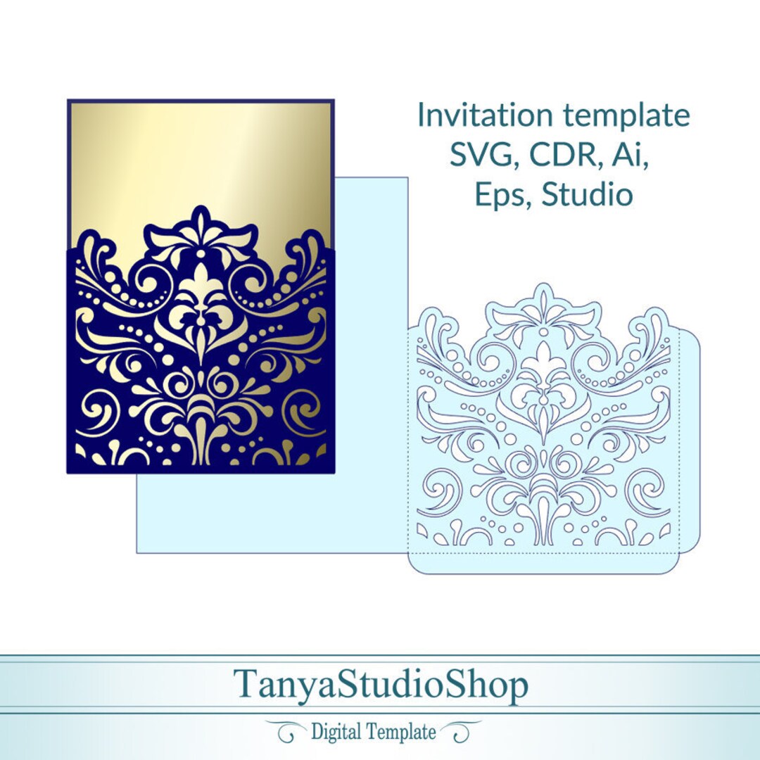 Wedding Lace Invitation SVG Template Elegant 5x7 Pocket Etsy