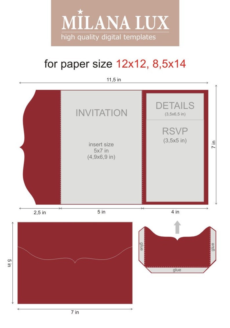 5x7 Tri fold Pocket Invitation Template Laser cut Pocket Etsy