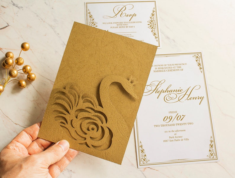 Wedding Invitation SVG Template Swan Lace 5x7 Pocket Envelope Etsy