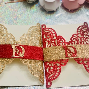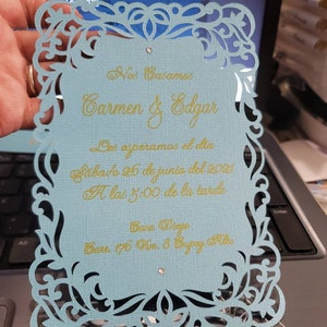 Laser cut wedding invitation Set 5x7 Cricut Template Gate Fold Tri