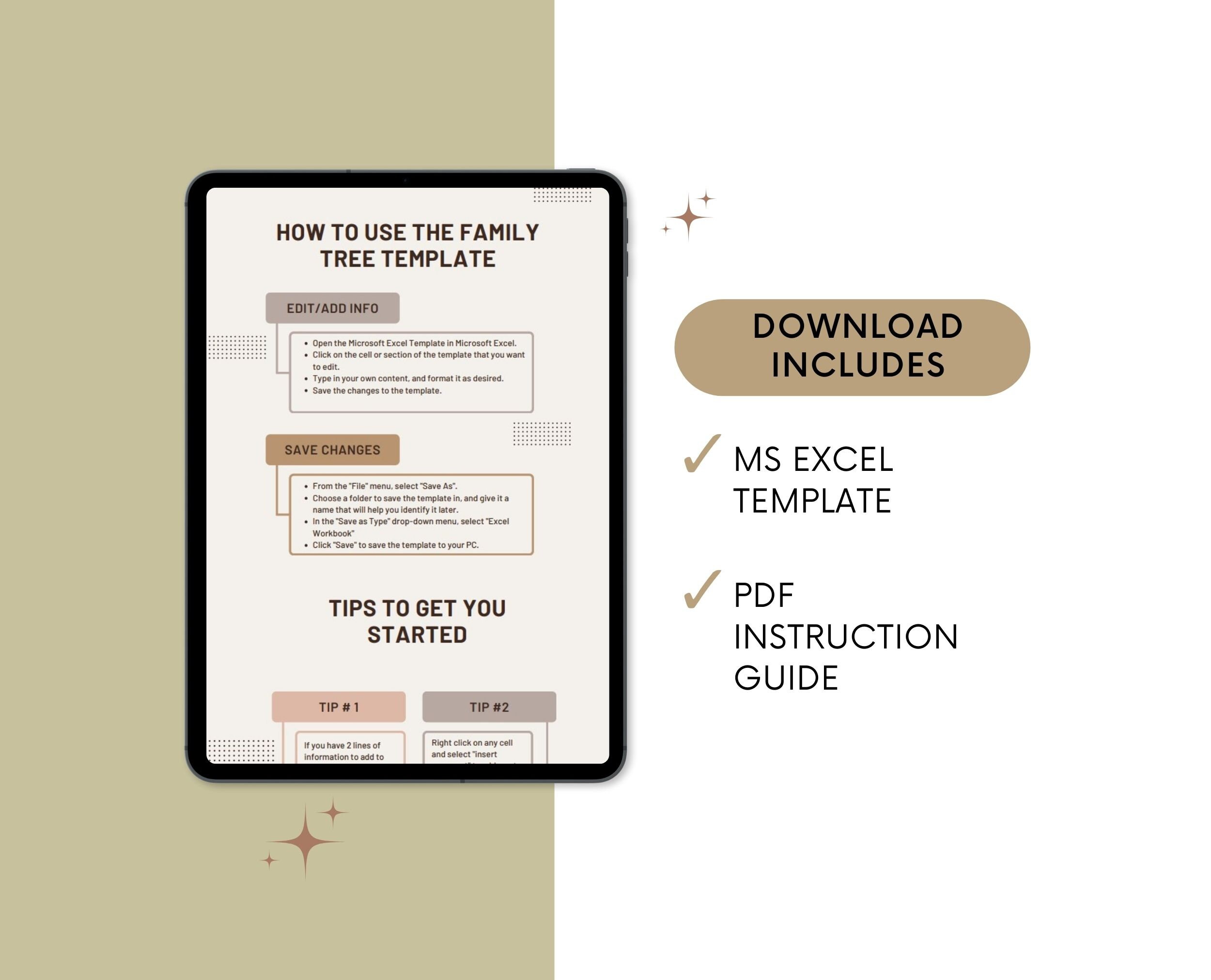 Family Tree Template for Excel 6 Generations Customizable Instant