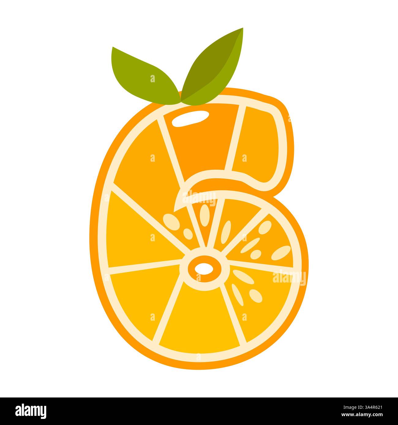 Orange fruit number Six Orange in the shape of number 6 Vector