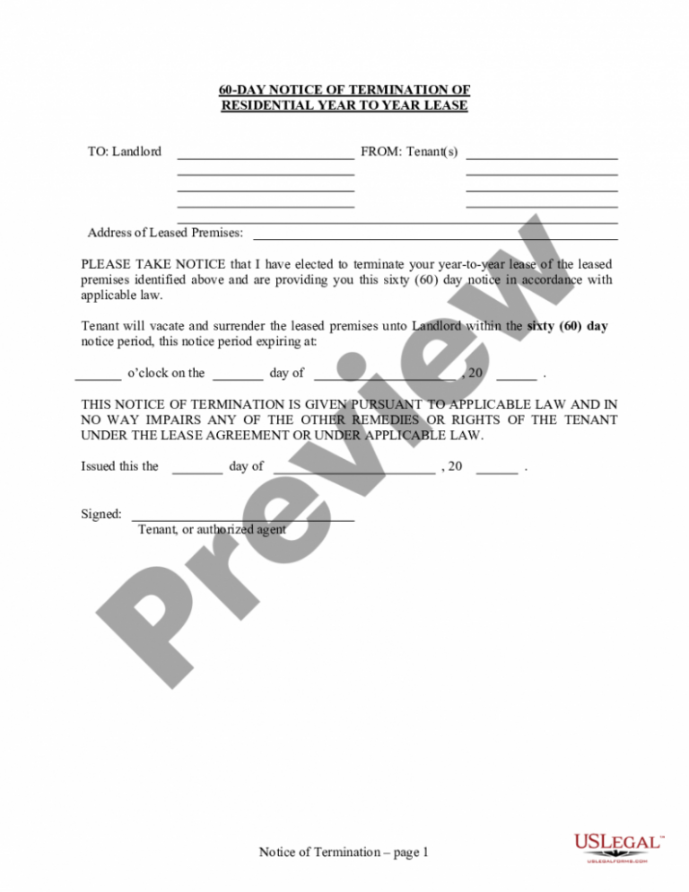 Free 60 Day Lease Termination Notice Template to Edit Online