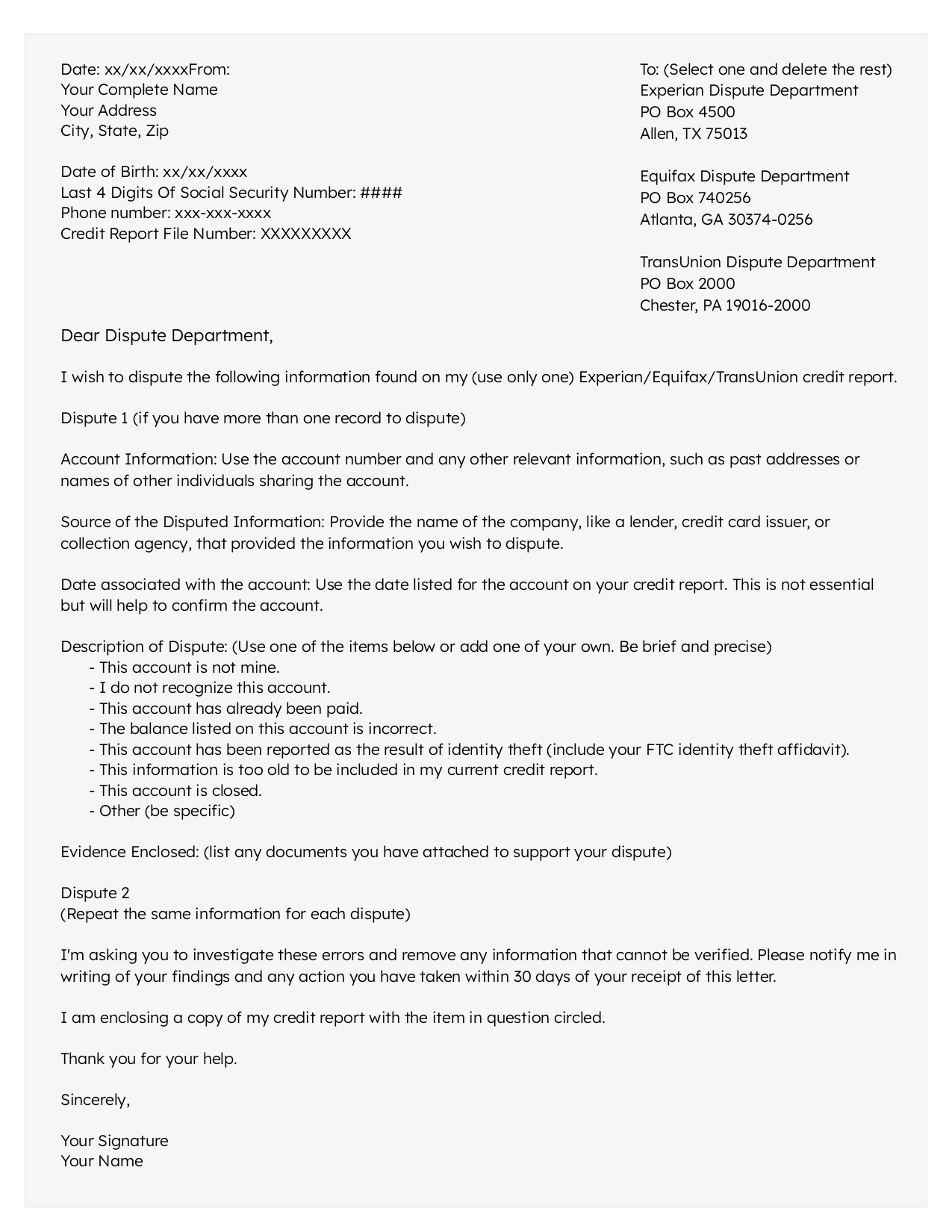 50 Best Credit Dispute Letters Templates Free ᐅ TemplateLab