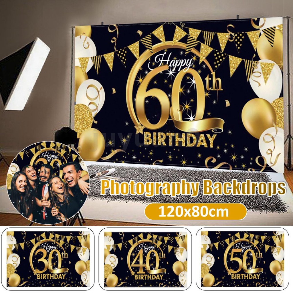 60th Birthday Decorations Backdrop Banner Black Gold Happy 60th