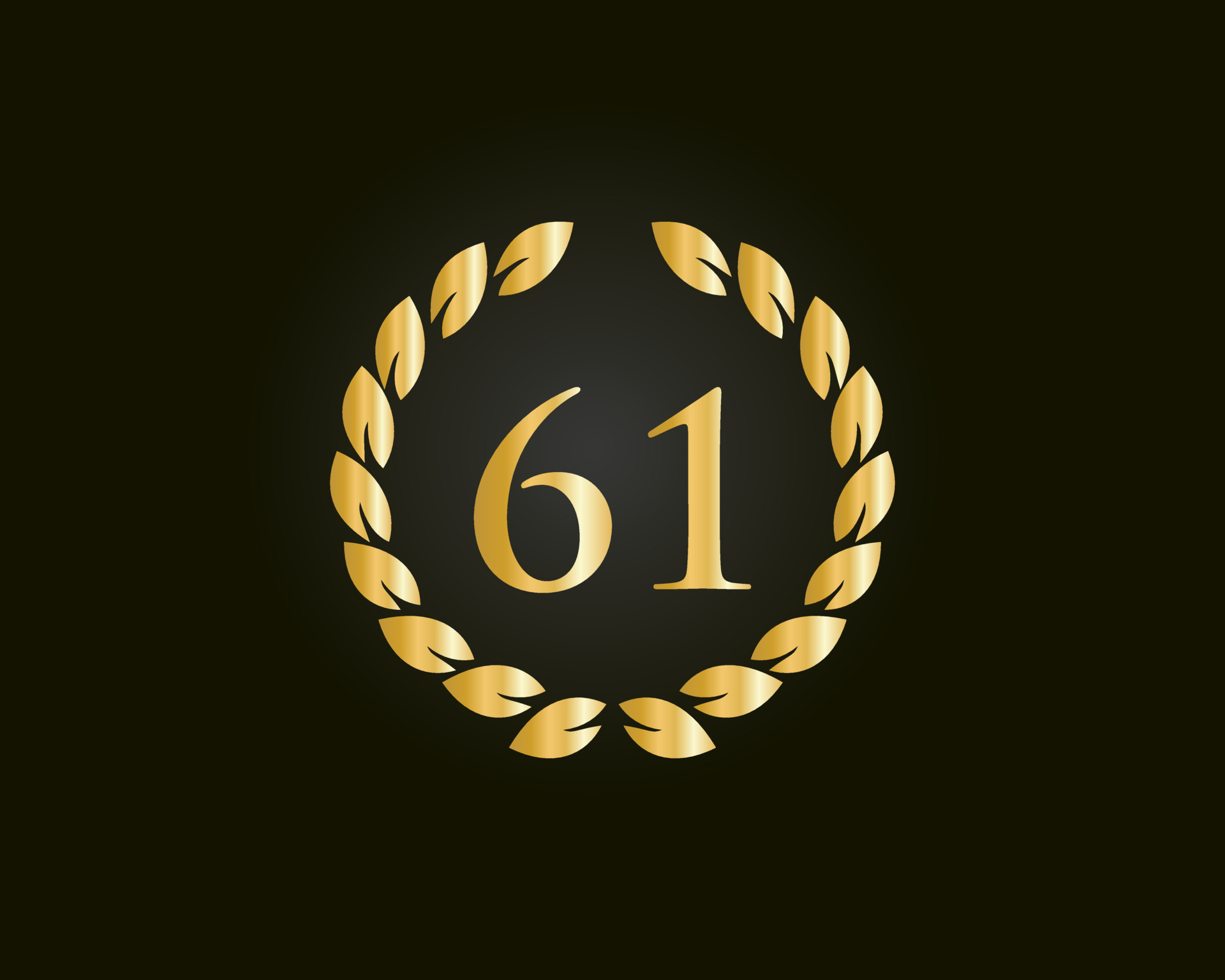 61 Years Anniversary Logo With Golden Ring Isolated On Black Background